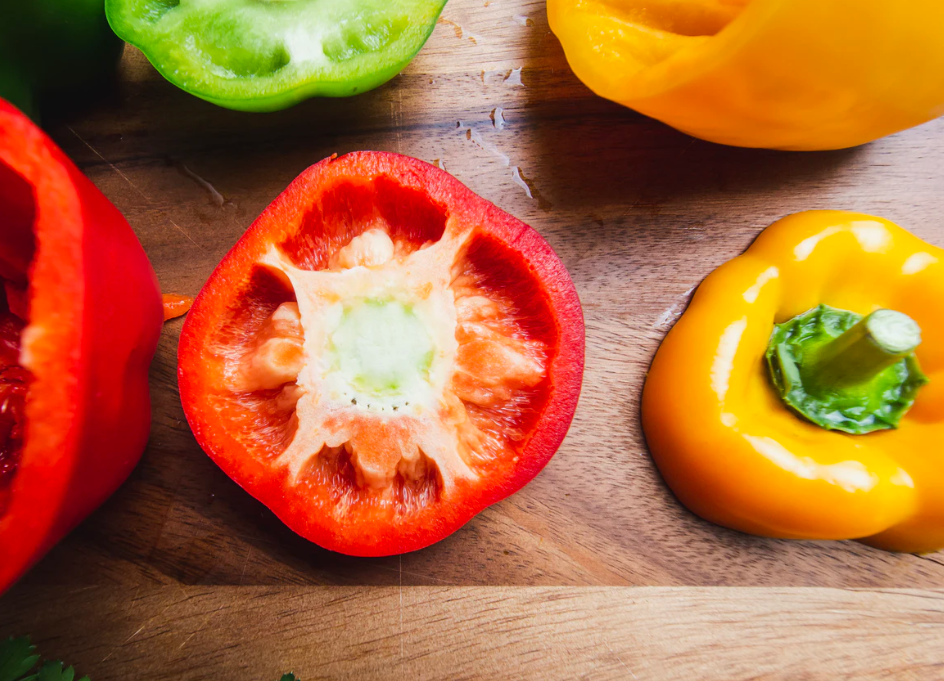 피부 좋아지는 음식 아홉 번째! 콜라겐 생성을위한 베타 카로틴과 비타민 C를 얻기 위해 녹색, 노란색, 주황색 또는 붉은 고추를 주목해주세요! 콜라겐은 피부를 단단하게 유지하고 피부 건조를 유발하는 요인을 예방합니다. 피망을 섭취하는 방법에는 여러 가지가 있습니다.